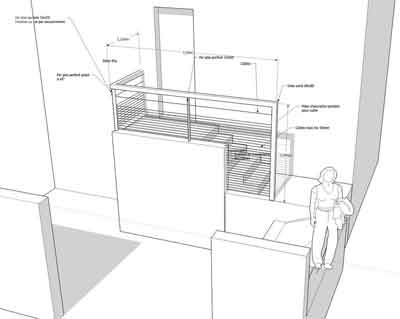 Ci-dessous : perspective réalisée sur Sketchup : garde-corps et nouveau palier d'accès |