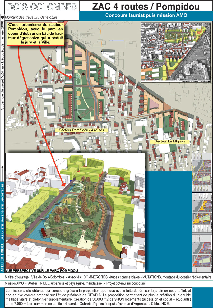 | ZAC Le Mignon / Pompidou-4 routes à Bois-Colombes. Mission d'urbaniste en chef. Dossier de création, dossier de réalisation, consultation aménageurs.