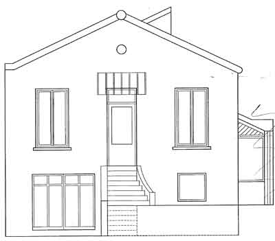 | Deuxième agrandissement d'un pavillon, cette fois ci vers le haut, et création de place de stationnement sur rue. Maçonnerie traditionnelle. | ||||||||