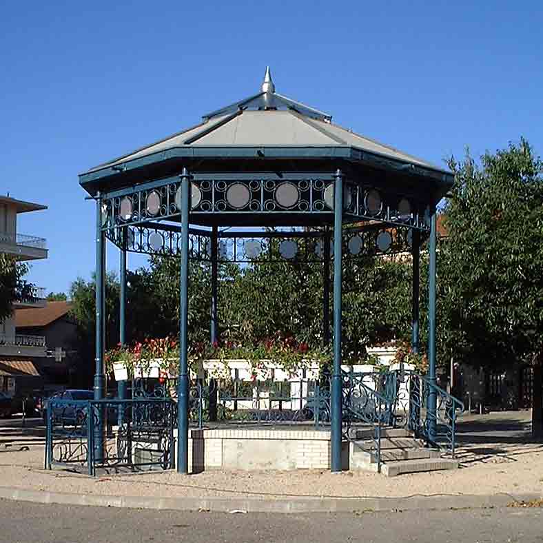 | Ce kiosque a été réalisé en même temps que le réaménagement de la place Claudius Béry. A la demande du Maire, il a été "customisé" par l'ajout d'une serrurerie travaillée que nous avons dessinée et qui lui donne une apparence plus rétro.